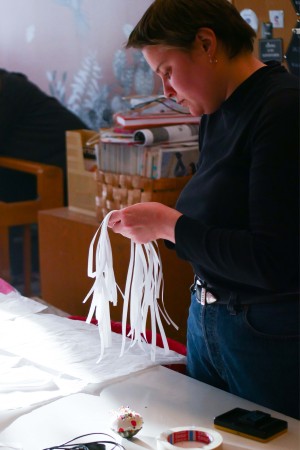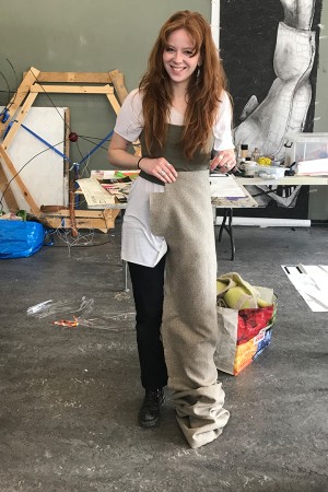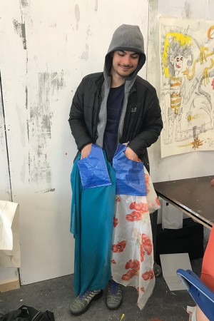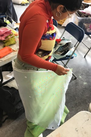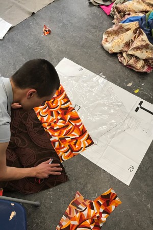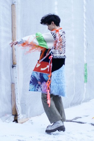 JOIN Collective Clothes is a modular clothing system that invites people to create clothes together. An open source manual explains how to make the four different shapes that together create a complete outfit. Each shape can be made by someone else; everyone can JOIN.