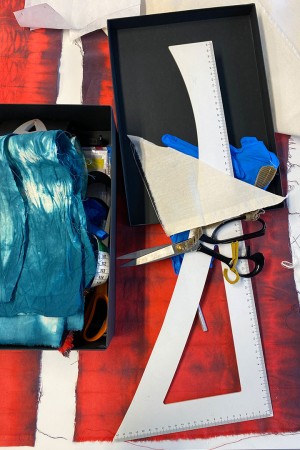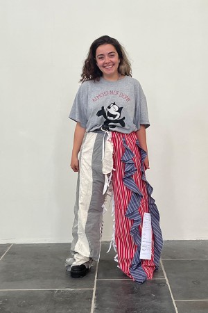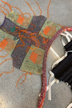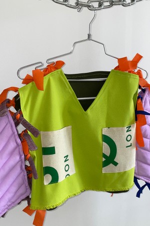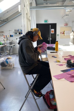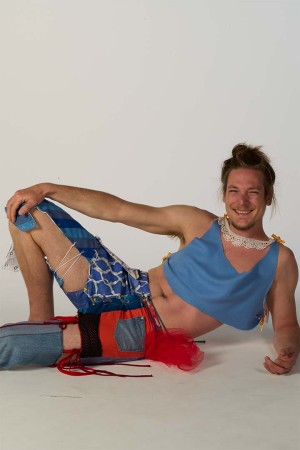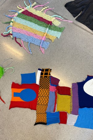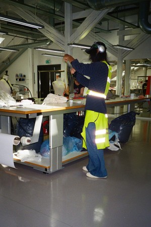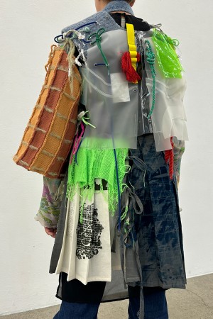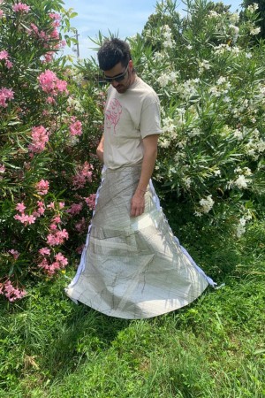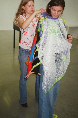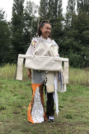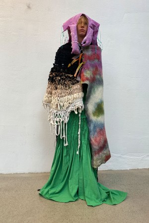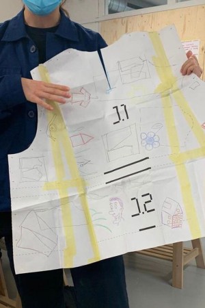JOIN Collective Clothes is a modular clothing system that invites people to create clothes together. An open source manual explains how to make the four different shapes that together create a complete outfit. Each shape can be made by someone else; everyone can JOIN.